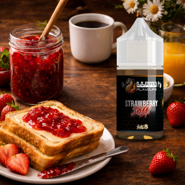 Deliciosa mermelada de frutilla, untada en tostadas con manteca.
